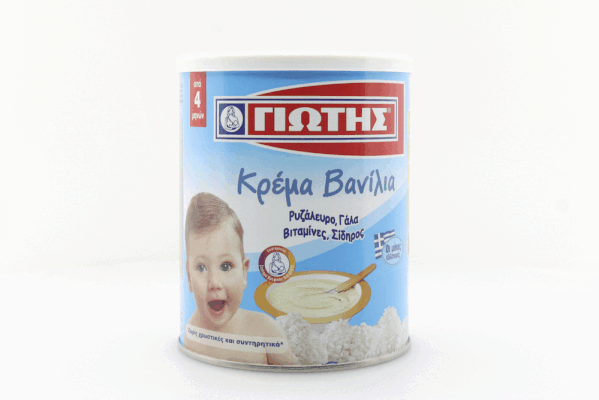 Η Κρέμα Βανίλια ΓΙΩΤΗΣ με ρυζάλευρο και γάλα, είναι η πρώτη κρέμα του μωρού σας από τον 4ο μήνα. Ιδιαίτερα εύπεπτη, με υπέροχη γεύση βανίλιας για ?γερά παιδιά από κούνια!