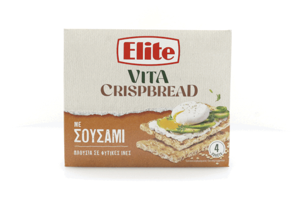 "Τα Elite Vita Crispbread με Σουσάμι είναι λεπτά, τραγανά & απολαυστικά Crispbreads με Σουσάμι. Μπορείτε να τα απολαύσετε σκέτα ή ως βάση για απολαυστικά snacks υψηλής διατροφικής αξίας για όλες τις ώρες της ημέρας!