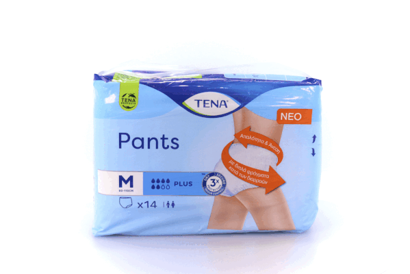 Τα TENA Pants Plus είναι λευκά, απαλά και άνετα εσώρουχα μίας χρήσης για άνδρες και γυναίκες που τα φοράτε τραβώντας τα προς τα επάνω, ακριβώς όπως τα κανονικά εσώρουχα. Με εφαρμοστή και υφασμάτινη υφή, φτιαγμένα από υλικά που αναπνέουν, είναι σχεδιασμένα για απαλή άνεση. Σε αντίθεση με τις κλασικές πάνες ενηλίκων, οι ΤENA Pants Plus διαθέτουν έναν υψηλά απορροφητικό πυρήνα ο οποίος κλειδώνει την υγρασία γρήγορα και αποτελεσματικά για απόλυτη ασφάλεια.
